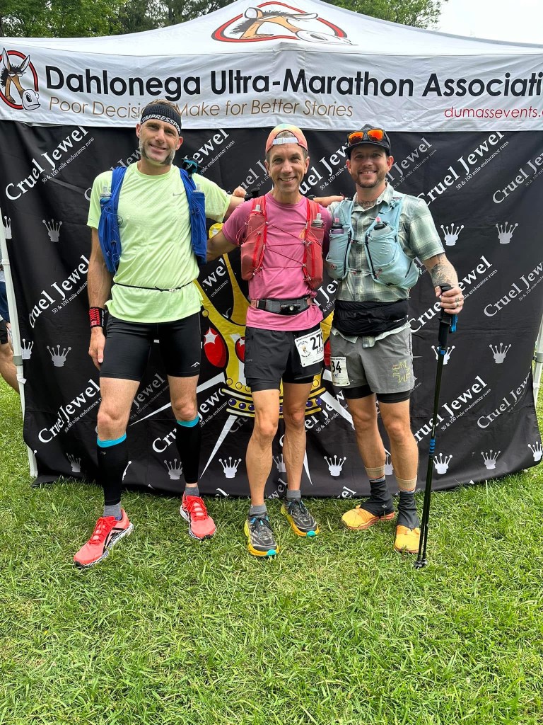 I’d just like to take a second to thank a few people – Tom Coutu, my hero & father, he’s always believed in me; Tom Westcott, my friend and high school soccer coach, he introduced me to running outside of organized sports, and taught me how to love the run; my wife Caitlin and stepson Conner, they always support and believe in me, and have crewed some of my toughest ultras, I love you guys!; all of my Dallas Dirt Runners/Trailhead Running Supply crew, you guys rock; my coach Karl Meltzer; and lastly Trent & Gabe of the ALQ/DUC crew, thanks for creating such an amazing running community – the best on Delmarva, dare I say THE WORLD!