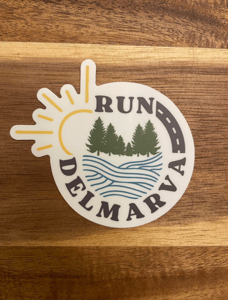 Our popular Run Delmarva waterproof 3″ sticker. For water bottles, vehicles, or wherever you want to show your love for running on Delmarva.